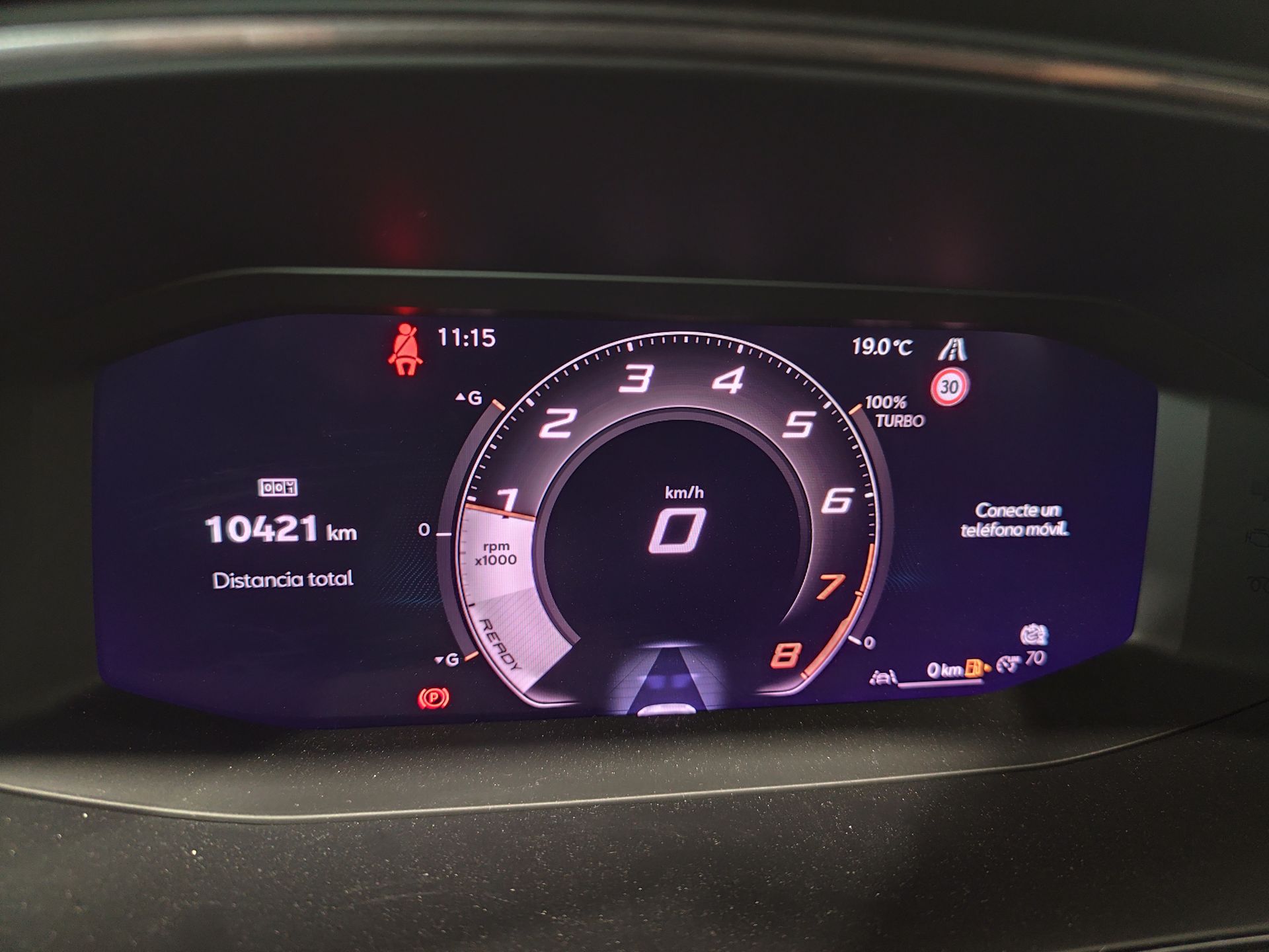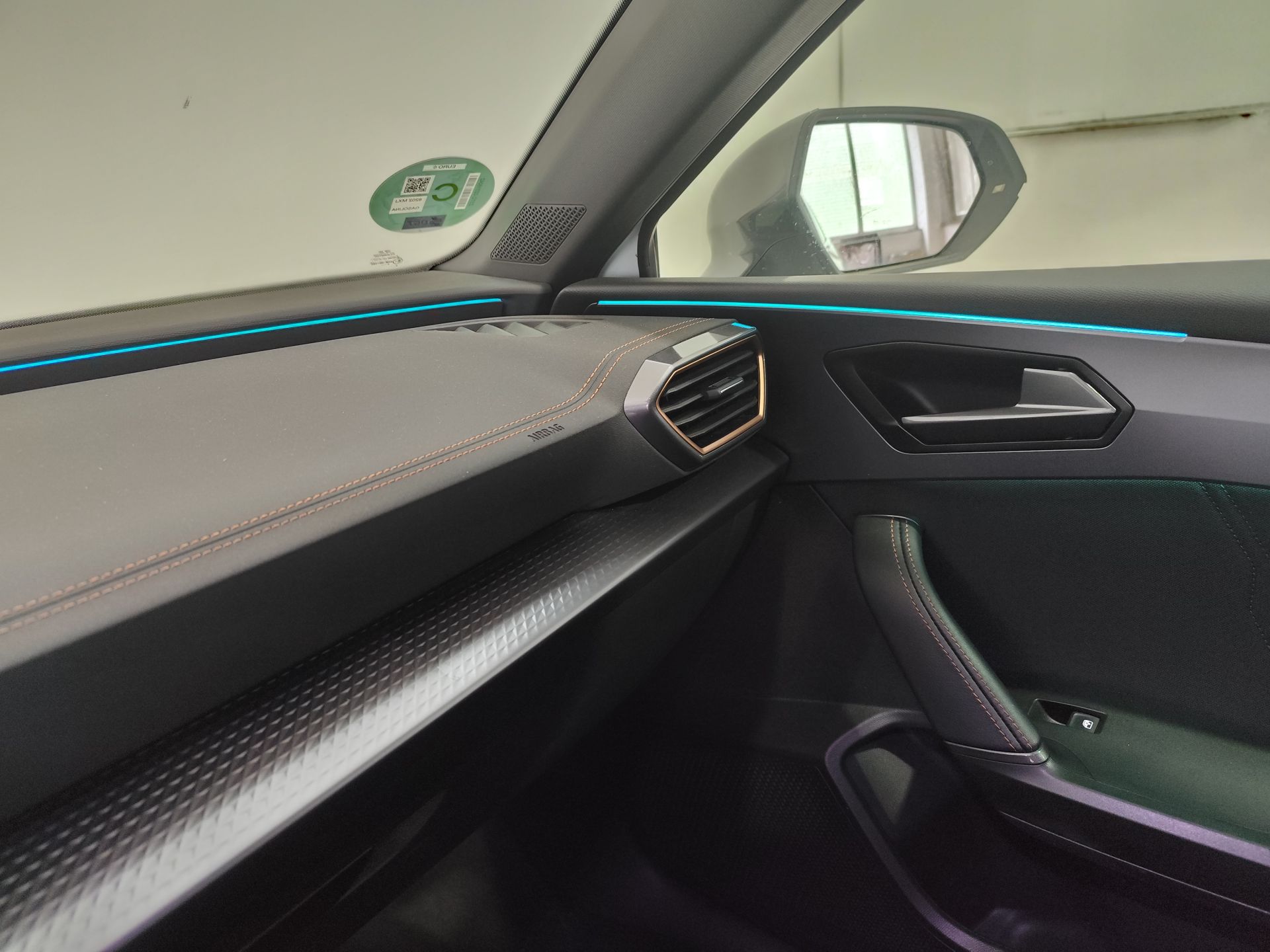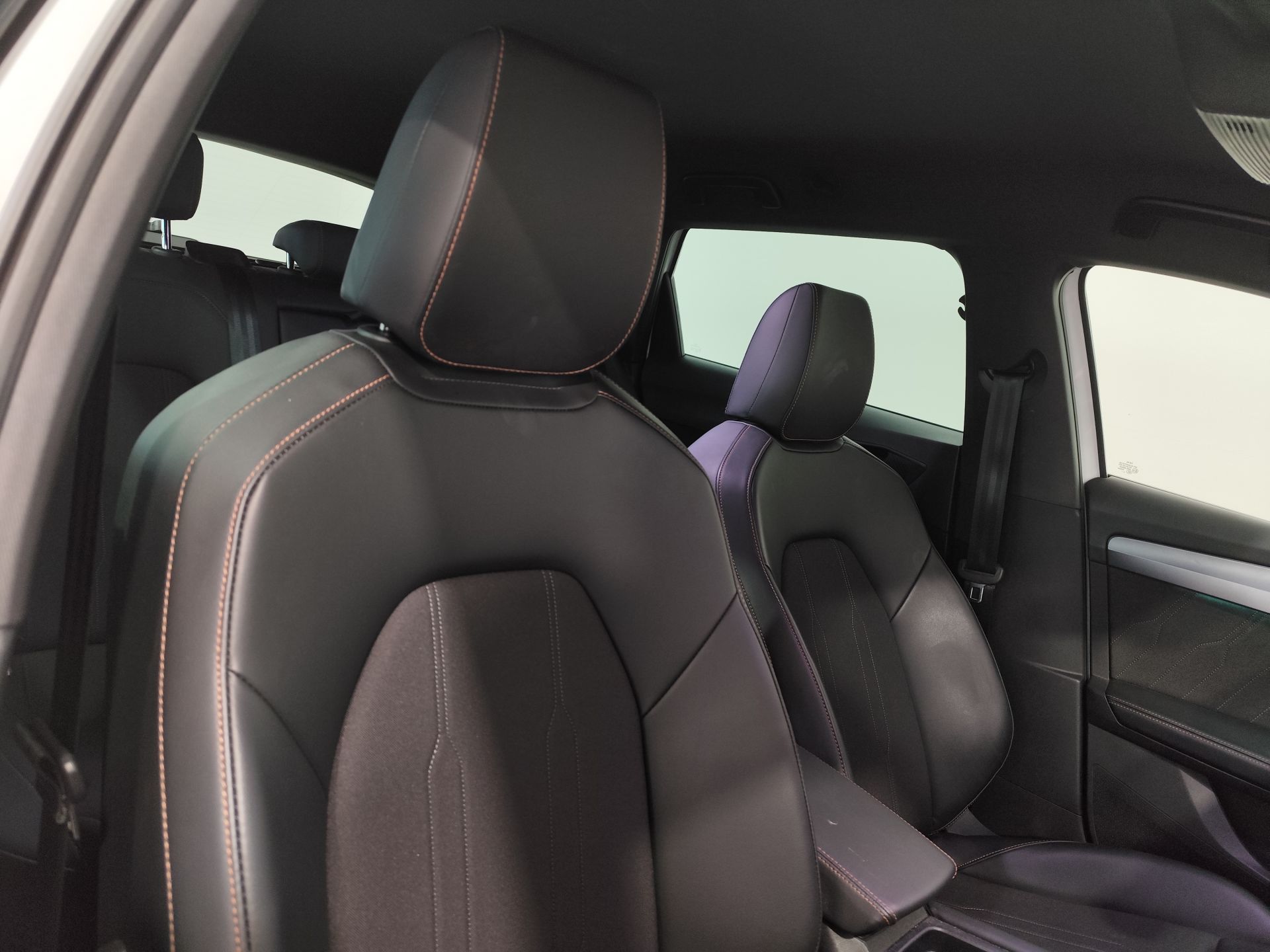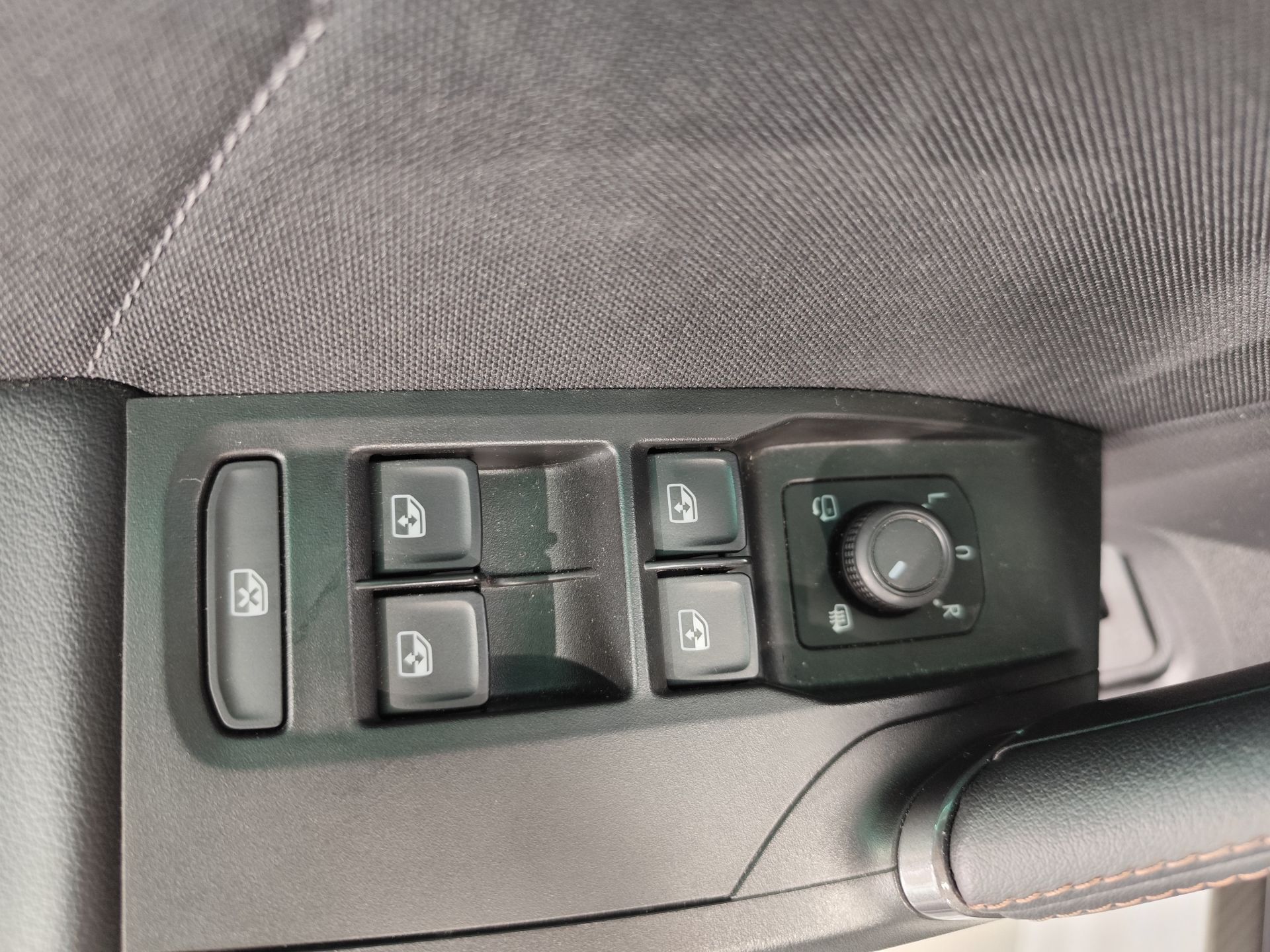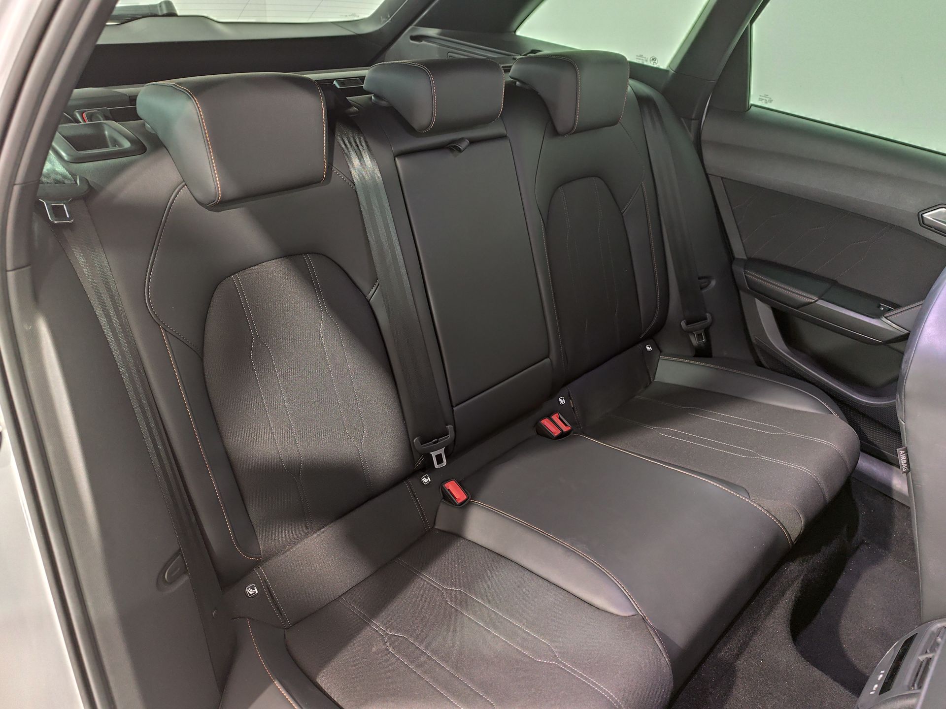 - Asientos de tela (material principal) y de cuero sintético (material secundario)