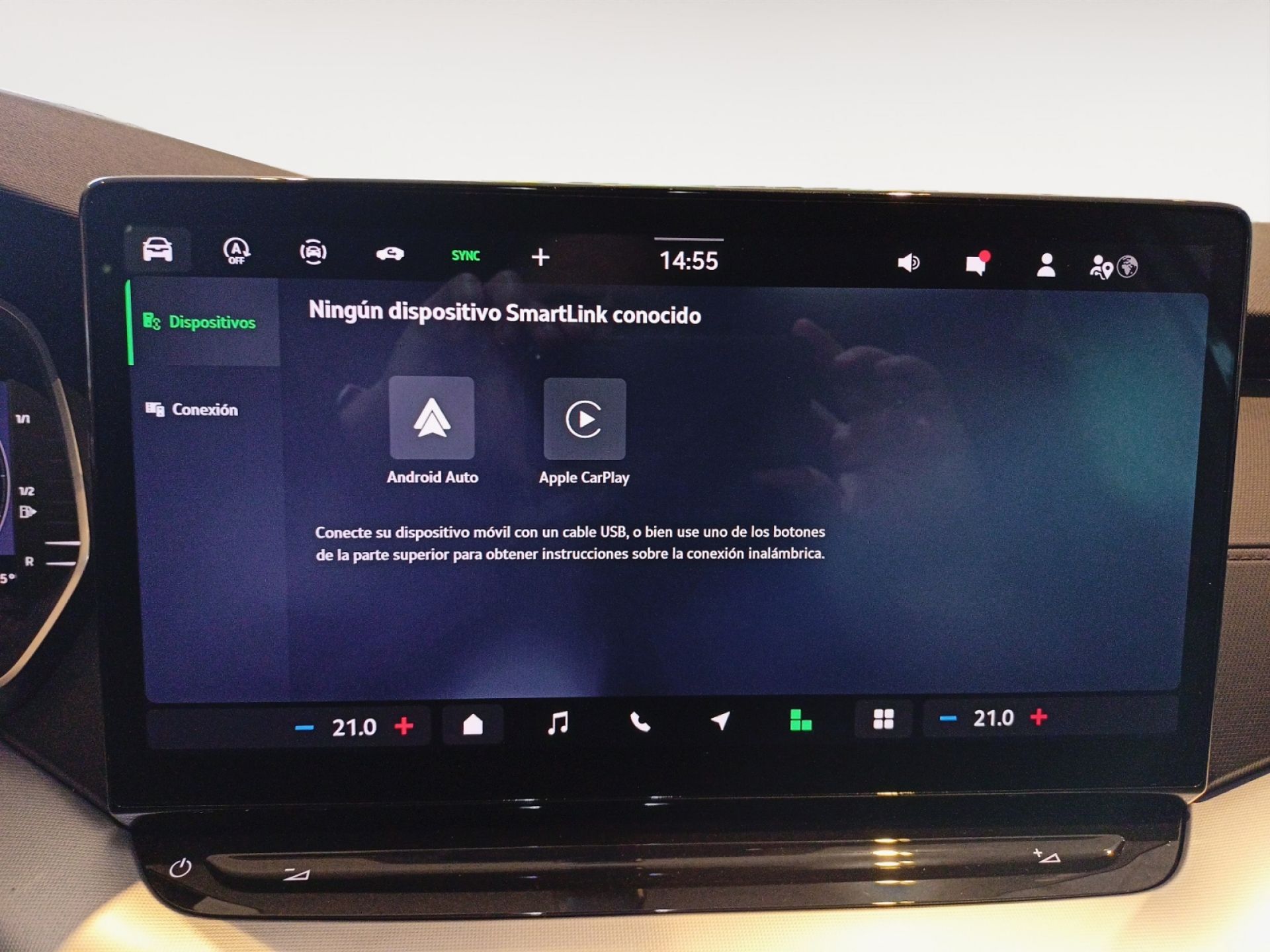 - Integración móvil Apple CarPlay, Android Auto, MirrorLink, 999, 999, 999, conexión inalámbrica Apple, Conexión inalámbrica Android y conexión inalámbrica Mirrorlink